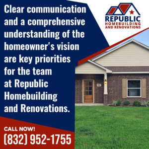 By investing time and effort into research, evaluation, and communication, you lay the foundation for a successful partnership that resonates with your vision. We encourage you to remember that the right general contractor isn’t just a name; it’s a partner who shares your enthusiasm for transforming your space. Republic Homebuilding and Renovations is a general contractor near Heritage Park, and we are the number one home remodeling company in Webster, TX. Contact us at (832) 952-1755 to understand how our general contractors can help you successfully complete home remodeling projects.
